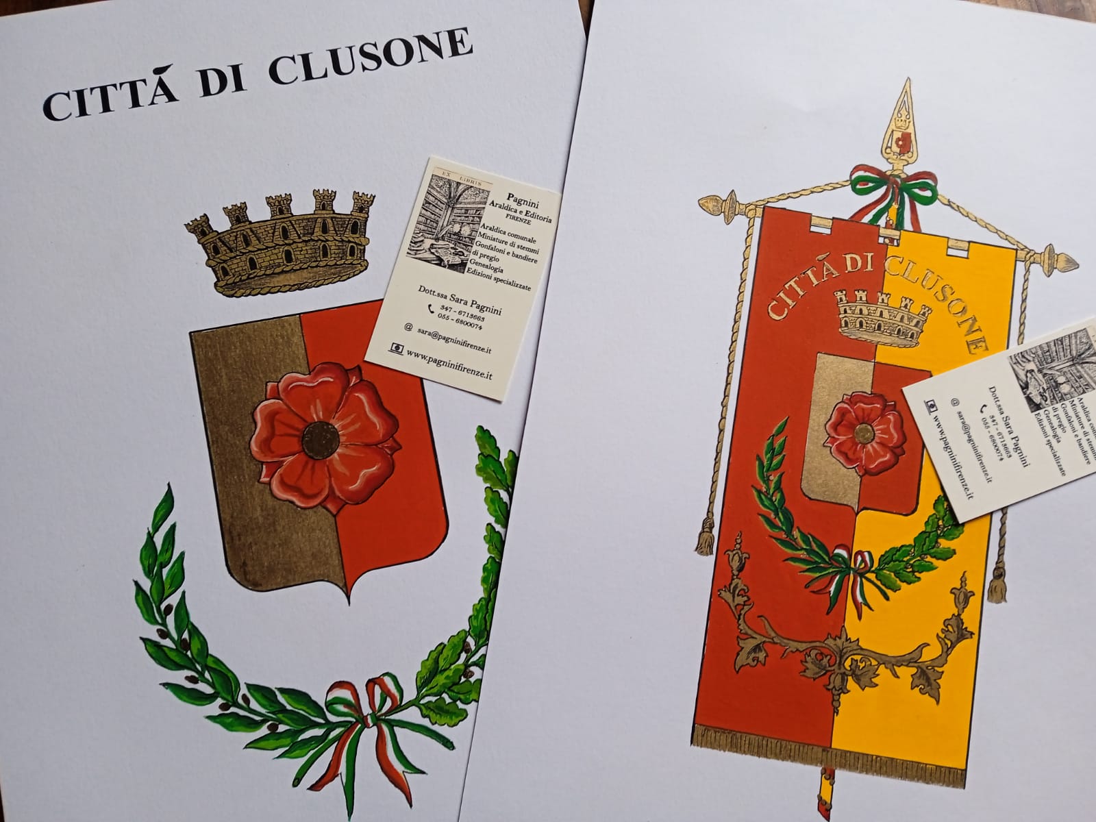 Su incarico dell'Amministrazione abbiamo disegnato la miniatura ufficiale del gonfalone del nuovo Ente nato da fusione; successivamente confezionato il drappo, come da regolamento vigente e ricamato su pura seta. I materiali usati per il ricamo sono di altissima qualità e assicurano una lunga durata.