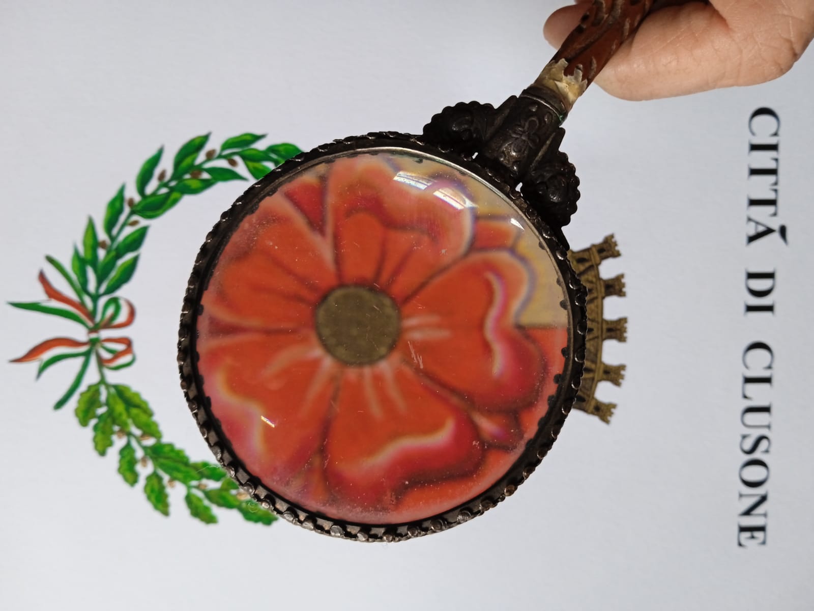 Abbiamo curato la pratica di riconoscimento degli emblemi comunali (ottenuto con DPR del 23 marzo 2023) e poi confezionato come da regolamento il gonfalone civico, curando nei minimi dettagli i fiori, o meglio, usando il linguaggio araldico, “il ramo di rosa di verde, fiorito di tre pezzi di rosso”, su campo d’argento.